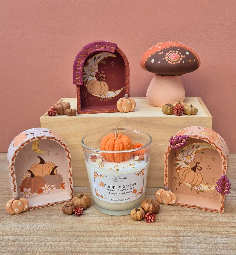 Deze collectie is geïnspireerd op de herfst en op de Kletische feestdag Mabon. Mabon is het tweede oogstfeest en wordt gevierd rond 21 september en wordt ook wel de herfstequinox genoemd. Mabon staat symbool voor de balans tussen dag en nacht. De herfstequinox staat symbool voor balans, loslaten en transformatie. Het is een tijd om stil te staan tussen de balans van licht en donker, zowel in de natuur als bij je zelf. Kijk voor de altaars bij The autumn tales