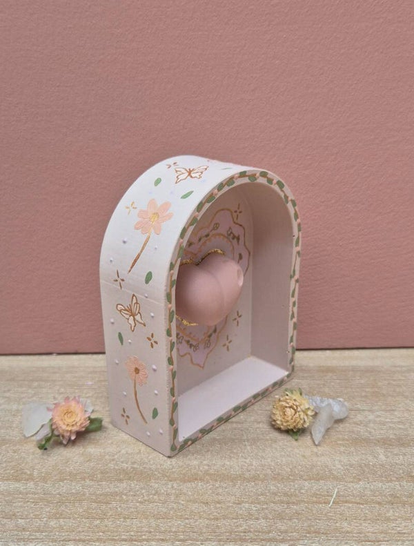 Het altaartje kan zowel opgehangen (op de achterkant zit een haakje) worden als staan.