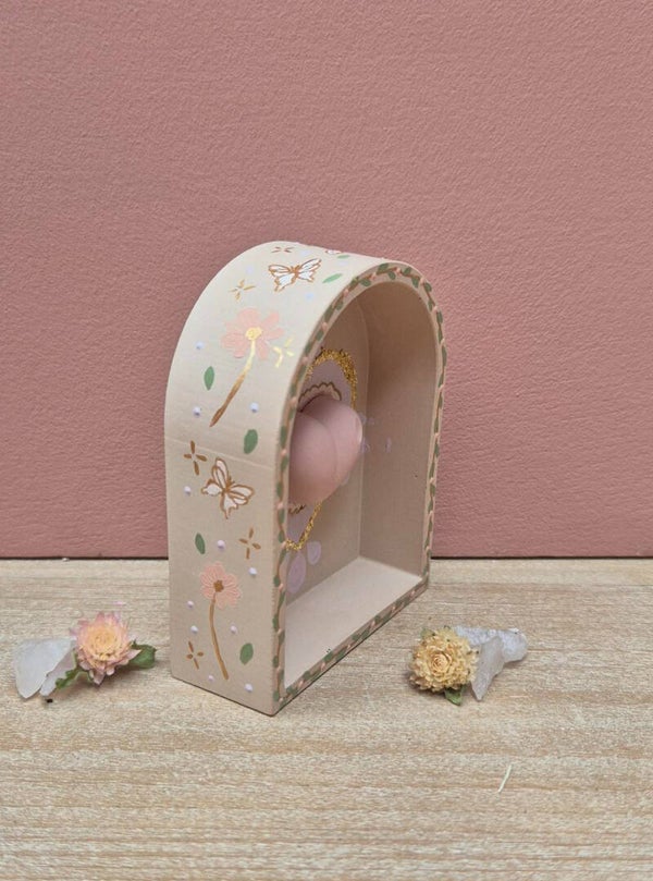 Het altaartje kan zowel opgehangen (op de achterkant zit een haakje) worden als staan.