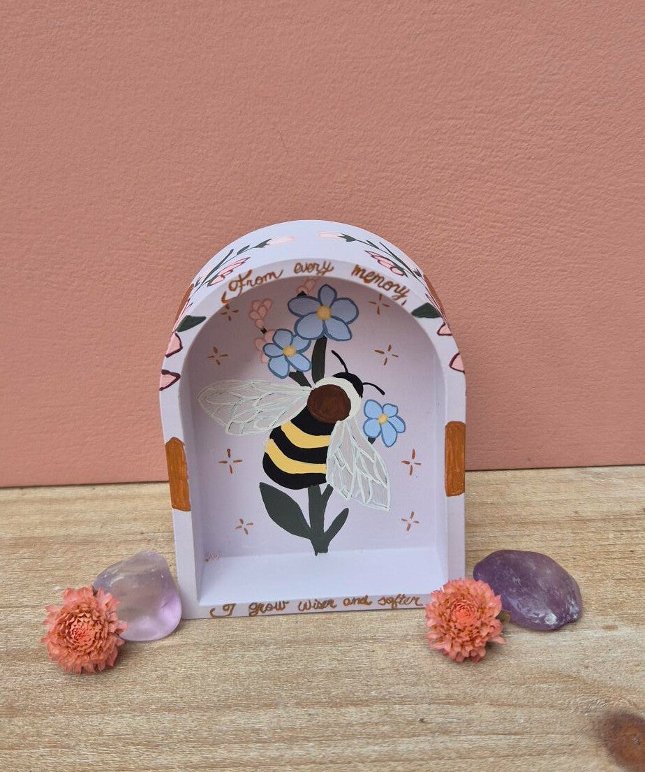 Tekst voor kant altaartje: "From every memory, I grow wiser and softer".